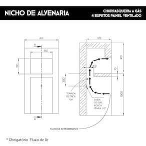 DESIGN E ESTRUTURA: - Painel frontal MODULAR em aço inox AISI 304 escovado; - Painel Ventilado; - Porta frontal de vidro temperado com sistema telescópico; - Grade interna de apoio; - Válvula de segurança contra vazamento de gás; - Bandeja coletora de gordura com frente de inox; - Controlador de queimador individual; - 04 Espetos rotativos com cabo TÉRMICO – Sendo 03 simples e 01 triplo; - Lâmpada interna; - Acendedor automático de fogo.