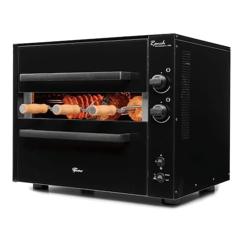 A Churrasqueira a Gás de Bancada Fischer Ranch 3 Espetos foi desenvolvida para quem busca praticidade e alta performance no preparo de churrascos. Compacta e elegante, ela se adapta facilmente a bancadas e áreas gourmet. Conta com três espetos rotativos automáticos que garantem assados suculentos e homogêneos sem a necessidade de girar manualmente. O acendimento automático e os queimadores infravermelhos individuais proporcionam agilidade e controle no preparo. A churrasqueira também possui portas duplas que retêm o calor, acelerando o cozimento e ampliando as possibilidades de receitas.