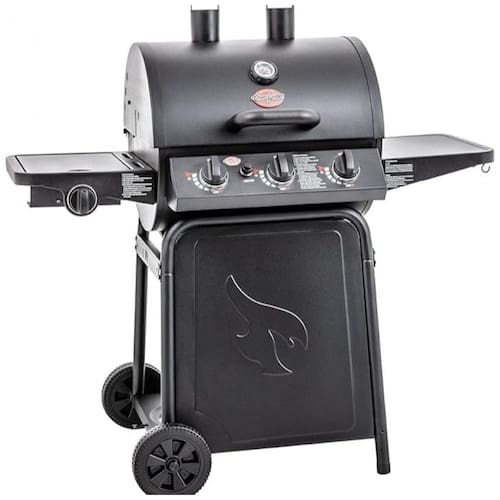 A Churrasqueira a Gás Char-Griller E3001 Grillin Pro oferece 438 polegadas quadradas de espaço para grelhar a gás, com 438 polegadas quadradas de área principal e 192 polegadas quadradas no rack de aquecimento. Os três tubos queimadores de aço inoxidável geram um total de 40.800 BTUs, incluindo um queimador lateral de 12.000 BTUs. A churrasqueira possui construção robusta em aço, grades de ferro fundido revestidas de porcelana, dois dutos para aquecimento uniforme, termômetro de aço inoxidável, alça do capô Stay Cool e ignição eletrônica em cada queimador. Esta churrasqueira a gás premium oferece 40.800 BTUs com 3 queimadores, tornando o churrasco excepcional em casa fácil. Os três queimadores com controles independentes proporcionam calor contínuo e equilibrado, enquanto a grande área de cozimento de 630 polegadas quadradas oferece ótimo sabor e aroma de churrasco. Construída em aço tubular resistente, possui dois dutos de fumaça para melhor ventilação, termômetro de churrasco em aço inoxidável, grelhas de ferro fundido revestidas de porcelana, carrinho com rodas grandes para fácil transporte, área de trabalho lateral com ganchos para utensílios de churrasco e design elegante em preto estilo barril com dutos de fumaça. Fácil de limpar com bandeja de gordura removível, acendimento eletrônico em cada queimador, e compatível com acessórios de churrasco Char-Griller como a capa de proteção e raspador de grelha. Dimensões: 122cm x 71cm x 122cm, 40kg.