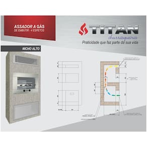 Churrasqueira a gás de embutir com 4 espetos, ideal para assar churrascos e pizzas. Possui amplo espaço interno, com 4 posições para espetos. Com desenho requintado dará um toque especial em sua área Gourmet. Não produz fumaça, o que faz o seu churrasco muito mais agradável.
