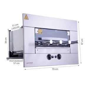 Churrasqueira a Gás de Embutir 4 Espetos Rotativos Age Titan - Tipo de Gás e Voltagem: Gás Natural - 127V