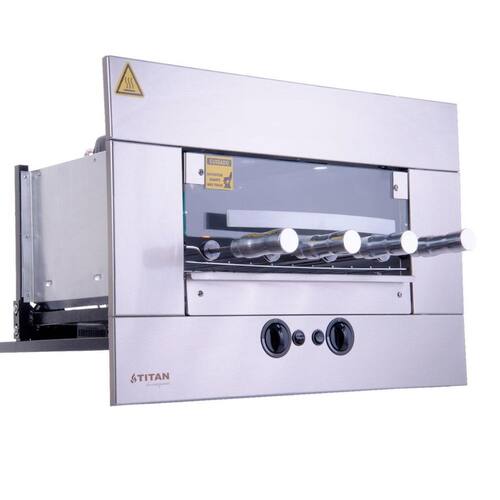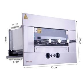Churrasqueira a gás de embutir 4 espetos rotativos age titan Tipo de gás e voltagem: gás natural - 127v Leve praticidade e sofisticação ao seu espaço gourmet com a churrasqueira a gás titan para embutir. Com sistema rotativo, queimadores infravermelhos e porta de vidro temperado, ela assa carnes, legumes e até pizzas sem produzir fumaça. Compacta, silenciosa e eficiente, é ideal para nichos em alvenaria e acompanha 4 espetos rotativos, iluminação interna e bandeja coletora de gordura. Atenção: escolha o tipo de gás correto Antes de finalizar a compra, verifique qual o tipo de gás disponível no seu imóvel: - glp gás de botijão ou cilindro : é o famoso gás de cozinha, vendido em botijões ex: p45 . Ideal para casas com abastecimento por botijão ou cilindro. - gn gás natural ou canalizado : conhecido como gás de rua, é fornecido por encanamento, comum em apartamentos e comércios. - escolher a versão errada pode causar falha na instalação e perda da . Em caso de dúvidas, consulte a nossa equipe antes de finalizar a compra. Desempenho e especificações: - queimadores infravermelhos: 2 unidades; - consumo gás por queimador: 190 g/h; - consumo gás total: 380 g/h; - potência do motorredutor elétrico: 28w; - tipo de gás: glp ou gás natural; - pressão de funcionamento: glp 2,8 a 3,5 kpa gás natural 2,2 kpa; escolher no momento da compra ; - tensão: 110v-220v escolher no momento da compra ; - giro do espeto: 6rpm; - frequência: 60hz; - lâmpada: halopin g9, 127 ou 220v, 40w; - consumo elétrico 0,06 kw/h; - acendimento: automático com botão em inox. Design e estrutura: - acabamento superior, em aço inox 304; - porta frontal de vidro temperado com sistema telescópico; - grade interna de apoio; - válvula de segurança contra vazamento de gás; - bandeja coletora de gordura com frente de inox; - controlador de queimador individual; - 04 espetos rotativos com cabo térmico - sendo 03 simples e 01 triplo; - lâmpada interna; - acendedor automático de fogo. Medidas: - dimensões do produto axlxp : 48,7 x 70,3 x 56,5 cm - dimensões da embalagem axlxp : 59 x 86 x 68 cm - peso líquido: 18 kg peso bruto: 19 kg. Acessórios inclusos: - bandeja coletora de gordura com frente de inox; - 04 espetos rotativos com cabo térmico, sendo 03 simples e 01 triplo; Obs: indispensável o uso do kit venezianas para a ventilação do nicho. Informações adicionais: As entregas são feitas em horário comercial e a montagem fica por conta do comprador. As imagens são meramente ilustrativas podendo apresentar itens que não compõe o produto. As cores do produto podem variar de acordo com o monitor ou percepção visual. Marca: Não Informado