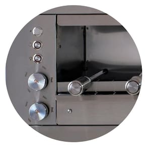 - Painel frontal sem vidro com sistema defletor que retém o calor interno;