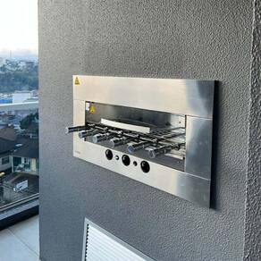 Esta churrasqueira é equipada com um painel frontal modular em aço inox AISI 304 escovado, garantindo durabilidade e elegância ao seu ambiente. Possui uma bandeja coletora de gordura com frente de inox, grade interna de apoio e controlador de queimador individual para maior praticidade. A válvula de segurança contra vazamento de gás e a porta frontal de vidro temperado com sistema telescópico asseguram segurança e funcionalidade. Com 06 espetos rotativos, sendo 05 simples e 01 triplo, cada espeto suporta até 1,7 kg de carne, com uma capacidade total de 10,2 kg. O acendedor automático de fogo e a lâmpada interna tornam o uso ainda mais fácil e conveniente.