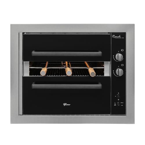 Churrasqueira a Gas Fischer 3 Espetos Ranch, e a escolha ideal para quem busca um churrasco funcional, seguro e com toque de sofisticacao. Com design moderno, conta com espetos rotativos automaticos, queimadores infravermelhos, acendimento automatico e lampada interna para facilitar o preparo. Possui sistema corta gas para maior seguranca e revestimento EasyClean, que torna a limpeza mais simples e rapida.