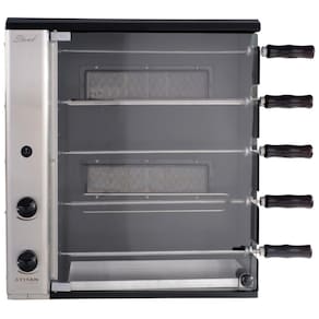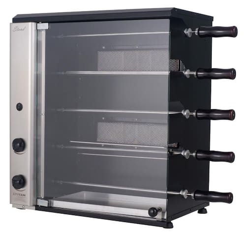 A Churrasqueira a Gás Natural de Bancada Vertical Titan Stand 5 Espetos Giratórios 127V é a opção perfeita para quem deseja um churrasco saboroso e prático. Projetada para ser colocada em uma base plana, essa churrasqueira é ideal para assar carnes, legumes e frutos do mar, apresentando um sistema rotativo que assegura um cozimento uniforme com o uso de dois queimadores infravermelhos.