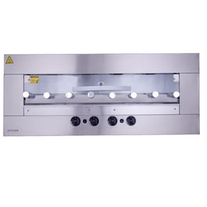 Com capacidade total de 13,6 kg de carnes, esta churrasqueira possui um giro do espeto de 6 RPM. Funciona com gás natural, com pressão de funcionamento de 2,2 KPa. O uso do Kit Venezianas para ventilação do nicho é indispensável.