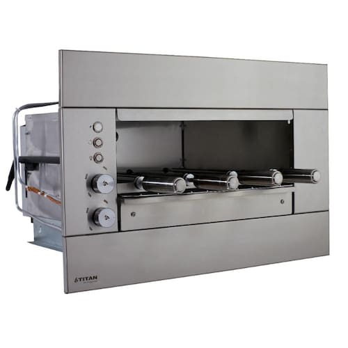 A Churrasqueira a Gás Natural de Embutir Titan Prime Suprema 4 Espetos Rotativos 127V é a escolha ideal para transformar seu espaço gourmet em um ambiente moderno e prático. Perfeita para assar carnes, legumes e pizzas, essa churrasqueira garante um saboroso churrasco com seu sistema rotativo eficiente. Com iluminação interna e queimadores infravermelhos, ela proporciona um preparo silencioso e livre de fumaça, agregando conforto e conveniência ao seu dia a dia. Equipado com botão faísca em inox, botão motor com LED, botão lâmpada com LED e um registro de controle de temperatura com botões injetados em alumínio, esse modelo combina funcionalidade e estilo. Os 04 espetos rotativos, sendo 03 simples e 01 triplo, possuem cabos térmicos em inox, permitindo suportar até 1,7 kg de carne por espeto. A churrasqueira também conta com 02 queimadores infravermelhos, painel frontal modular em aço inox AISI 304 escovado, bandeja coletora de gordura com frente de inox, grade interna de apoio e válvula de segurança contra vazamento de gás, garantindo segurança e praticidade. Com uma capacidade total de 6,8 kg de carnes e 18.000 BTUs/h, ela é indispensável para quem busca qualidade e sabor nos preparos.
