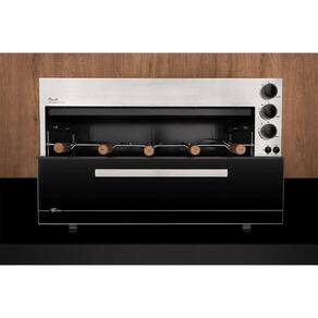 Um produto pratico e facil de usar. A Churrasqueira a Gas Fischer Ranch 5 espetos foi desenvolvida tanto para embutir como para bancada, possui acabamento em aco inox escovado e integra-se perfeitamente a varios estilos de ambientes. A vantagem de uma churrasqueira a gas Fischer Ranch vai ainda muito alem: acendimento automatico, bandeja esmaltada easy clean, lampada interna, espetos rotativos e o controle individual dos queimadores sao diferenciais que facilitam e proporcionam uma experiencia ainda mais agradavel no preparo de um bom churrasco, sem emitir fumaca.