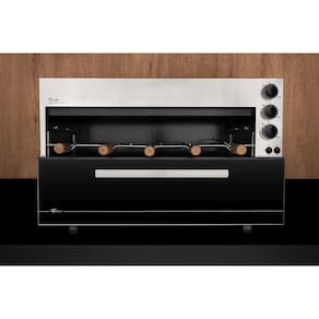 Um produto pratico e facil de usar. A Churrasqueira a Gas Fischer Ranch 5 espetos foi desenvolvida tanto para embutir como para bancada, possui acabamento em aco inox escovado e integra-se perfeitamente a varios estilos de ambientes. A vantagem de uma churrasqueira a gas Fischer Ranch vai ainda muito alem: acendimento automatico, bandeja esmaltada easy clean, lampada interna, espetos rotativos e o controle individual dos queimadores sao diferenciais que facilitam e proporcionam uma experiencia ainda mais agradavel no preparo de um bom churrasco, sem emitir fumaca.