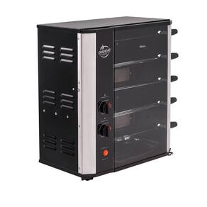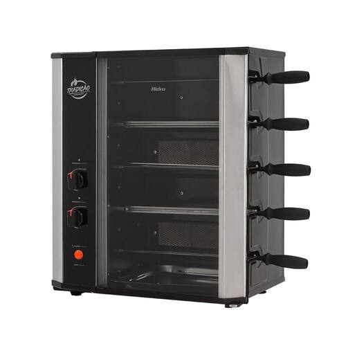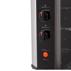 Conta também com capacidade para 5 espetos giratórios, assando 7,5 kg de carne por hora.