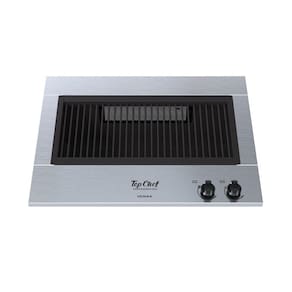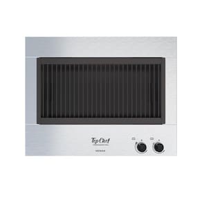 Churrasqueira Grill Top Chef, mesa em inox, revestimento interno em aço esmaltado, grelha argentina esmaltada, 2 queimadores infravermelho com controle independente, acendimento super automático, bandeja coletora de resíduos esmaltada.