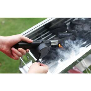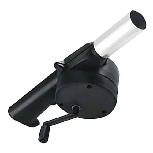 Instruções de Uso: -Encaixe bem a manivela no soprador. -Coloque o fogo no carvão. -Direcione o tubo do soprador para a base da chama e gire suavemente a manivela no sentido horário. -Para sua segurança. mantenha a ponta do soprador a uma distância mínima de 30cm do fogo. -Segure o soprador sempre pelo cabo. Não cubra a entrada de ventilação
