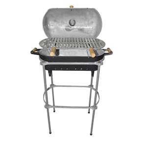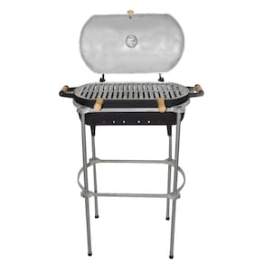 Churrasqueira Alumínio Fundido a Bafo Preta Pé e Suporte