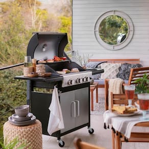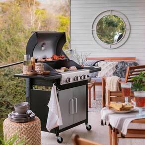 Churrasqueira a gás com 3 queimadores principais e 1 queimador lateral. Potência de 39.250 BTU. Termômetro integrado. Rodas para transporte. Bandejas laterais. Sistema de ignição eletrônica. Ideal para uso externo.Infelizmente não temos estoque do produto que você está procurando no momento.