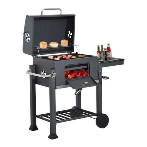 Churrasqueira Americana Bafo Carvão Grelhas Rodas - Itapuama Churrasqueira à Bafo no Carvão com Rodas e Termômetro Itapuama Feito com chapas de aço e com termômetro de luxo. Área para cozimento: 58 x 42 cm l x p . Tampa articulada para cozinhar ou defumar Grelha com acabamento esmaltado para facilitar a limpeza Prateleira lateral dobrável com gancho e armazenamento Bandeja de carvão com altura ajustável para controle de temperatura Porta de acesso para carvão e coletor de cinza removível Grelha de aquecimento separada. A grade se encaixa perfeitamente em todos os jardins. Graças à construção sólida, é muito estável e garante a segurança de uso. Seu tamanho permite que você prepare muitas deliciosas iguarias ao mesmo tempo. - 2 rodas para facilitar o movimento - prateleira lateral com dimensões: 48,5 x 38 cm - prateleira inferior com dimensões: 61 x 38 cm - grelha para aquecer alimentos: 54 x 23 cm - forno: 51 x 30 cm - esmalte preto - dimensões: 1.15 x 67 x 107 cm largura x profundidade x altura - peso: 29 kg Especificações: composição - 96% aço , 3% aço inox, 1% plástico medidas totais: 1,15 x 0,60 x 1,08 c x p x a