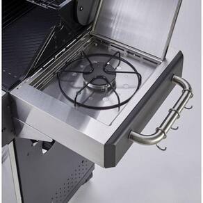 Uma churrasqueira a gás com 3 queimadores + 1 queimador lateral, 10,5 kW + 3 kW. Ideal para cozinhar para até 8 pessoas. Fácil de usar: fácil ignição com uma mão. Grelhas e chapa de ferro fundido esmaltado: bom nível de inércia, distribuição uniforme de calor. Cozinha múltipla: grelhador, grelha, tampa para cozinhar no forno e um queimador lateral. Ergonômico e prático: termômetro, suporte para toalha de papel e abridor de garrafas incluídos. Espaço de armazenamento para a garrafa de gás e utensílios de cozinha. Luz LED para monitorar a cozinha, mesmo após o pôr do sol - Fácil de limpar: - Lareira de esmalte muito elegante - Bandeja de gotejamento acessível a partir da frente e adequada para recipientes de alumínio - Fácil de mover: -4 rodas rotativas - Alças grandes - Construídas para durar por muito tempo: - Queimadores de aço inoxidável que resistem a efeitos climáticos e térmicos - Capa protetora incluída - Garantia de 5 anos