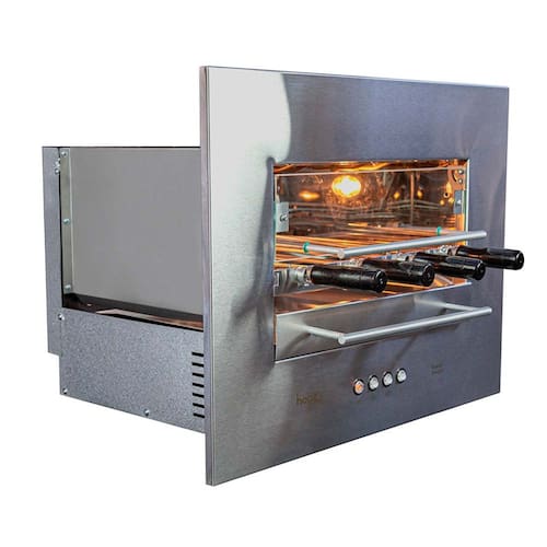 A Churrasqueira Assador Rotativa Elétrica de Embutir é a solução ideal para sua cozinha ou espaços gourmet. Ela possui uma estrutura em aço inox 304 para maior durabilidade e facilidade na limpeza. Sua resistência possibilita maior potência e rapidez para assar seu churrasco. Com um sistema de rotação de espetos, permite assar de forma homogênea todos os tipos de carne, deixando seus alimentos muito mais saborosos. Possui bandeja coletora de gordura, facilitando a limpeza e deixando seu alimento muito mais saudável. Além disso, acompanha uma grelha em aço com acabamento cromado para gratinar pizzas, carnes e outros alimentos. A Churrasqueira Assador é ecologicamente correta, não produz fumaça e assa seu churrasco sem prejudicar o meio ambiente. CARACTERÍSTICAS TÉCNICAS: - Produzida em Aço Inox 304 - Lâmpada Interna - Sistema de Rotação de Espetos - Aquecimento por Resistência Elétrica - Grelha com Acabamento Cromado - Vidro Temperado Reticulado - Potência do Motor de 100w - Capacidade de 1,5Kg de Carne por Espeto - Tensão 127 V - Garantia de 6 Meses MEDIDAS PARA EMBUTIR: Altura: 42 Cm Largura: 52Cm Profundidade: 53 Cm MEDIDAS TOTAIS: Painel Frontal: 54 x 70 cm Altura: 54 Cm Largura: 70 Cm Profundidade: 59 Cm Peso: 21 Kg ITENS INCLUSOS: - 1 Churrasqueira - 1 Bandeja Coletora de Gordura - 1 Grelha Cromada - 3 Espetos Simples - 1 Espeto Triplo INFORMAÇÕES ADICIONAIS: *Não trabalhamos e não nos responsabilizamos pela montagem do móvel. Antes da montagem conferir se o produto está de acordo com o que comprou, produto montado e danificado pela montagem não será aceito troca. **As imagens ambientadas são meramente ilustrativas podendo apresentar itens que não compõe o produto. As cores do produto podem variar de acordo com o monitor ou percepção visual. ***Limpeza e/ou manutenção devem utilizar escova com cerdas macias e pano úmido, não utilizar produtos abrasivos. Marca: Hope Gourmet