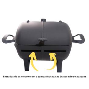Sistema de Entrada e Saída de Ar: As aberturas de ventilação garantem a circulação contínua de oxigênio, mantendo as brasas acesas e evitando que se apaguem durante o uso.