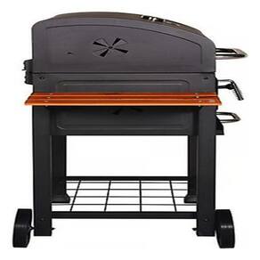 MARCA: Mr Beef COR: Marrom MATERIAL: Ferro ALTURA DO PRODUTO: 145cm LARGURA DO PRODUTO: 154cm COMPRIMENTO PRODUTO: 79cm CARACTERÍSTICAS: Possui mesa de apoio e gancho para acessórios ORIGEM: Importado PESO BRUTO: 40,000 kg PESO LÍQUIDO: 40,000 kg USO: Externo ÁREA DE COCÇÃO: (LxC) 71,5x46,5 cm ALIMENTAÇÃO: Carvão QUEIMADORES: Não PROFUNDIDADE: 79 cm TERMÔMETRO: Não MATERIAL ESTRUTURA: Ferro INCLUSO: 1 churrasqueira. BANDEJAS: 2 COR ESTRUTURA: Preto NÍVEL COZIMENTO: 2 RODAS: Sim"""