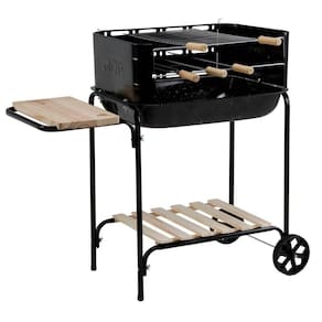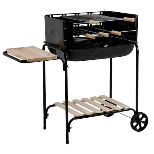 A linha de Churrasco Mor foi feita para todos os tipos de churrasqueiros, do mais requintado até os churrasqueiros de fim de-semana. O prazer de assar uma boa carne e o culto a reunião dos amigos em torno do fogo ficam ainda mais gostosos e fáceis de preparar com os espetos, churrasqueiras e acessórios de nossa linha.Composição do ProdutoCorpo em chapa de aço esmaltado, pés em tubo de aço acabamento pintura preta a base de água, acessórios cromados, grade para utensílios, tábua para churrasco, rodas para facilitar o transporte.Itens inclusos na embalagem 1 churrasqueira, 1 grelha , 1 espeto duplo 58cm, 2 espetos simples 58cm 1 tábua de carne, 1 grade de utensílios