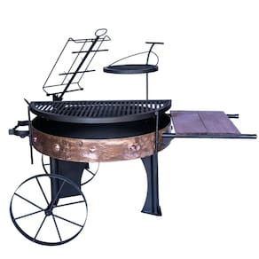 Churrasqueira com detalhes em cobre e rodas, perfeita para grandes churrascos com amigos e família. Churrasqueira fogo de chão onde se pode fazer um