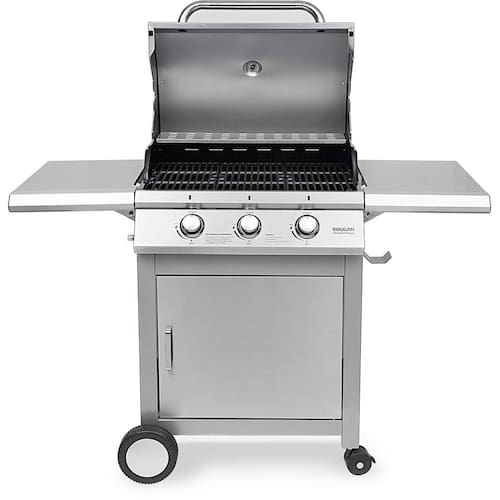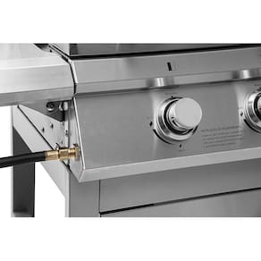 3 Queimadores Controlados Separadamente: Ajuste o calor de acordo com suas preferências e pratos.Acendimento Automático: Inicie seu churrasco com facilidade e rapidez.Termômetro: Monitore a temperatura interna para churrascos precisos.Bandeja para Retirada de Gordura: Mantenha sua churrasqueira limpa e seus alimentos saudáveis.Com Armário e Rodas Deslizantes: Armazene utensílios e mova a churrasqueira com facilidade.Grelhas: Perfeitas para grelhar carnes, frango, legumes e muito mais.Funciona Também a Bafo: Prepare pratos que requerem cozimento lento e suculência.Compatibilidade com Gás Butano de Baixa Pressão, Gás Propano ou Misturas de GLP: Certifique-se de utilizar o registro de baixa pressão adequado através de uma mangueira flexível.Especificações: