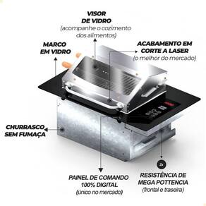 - Ideal para apartamentos e espaços gourmet, sua tecnologia elimina a fumaça, tornando desnecessário qualquer sistema de exaustão.