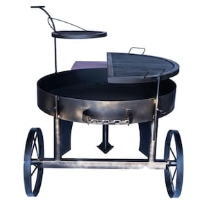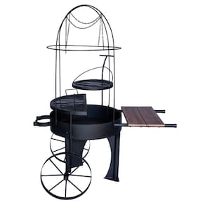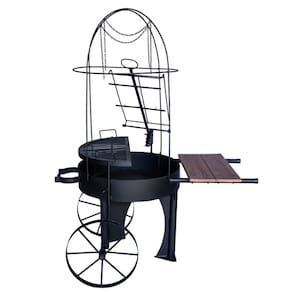 Churrasqueira de ferro com rodas, perfeita para grandes churrascos com amigos e família. Churrasqueira fogo de chão onde se pode fazer um
