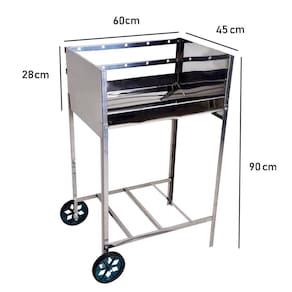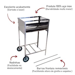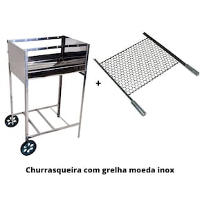 Churrasqueira de inox com rodinha + grelha moeda média inox