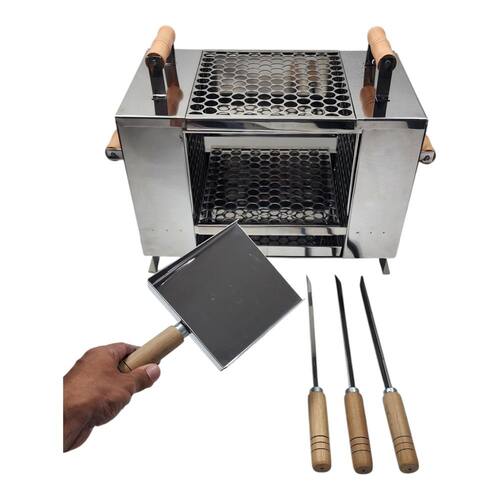 Churrasqueira a carvão para apartamento em aço inox 430, ideal para ser utilizada em locais fechados como varandas, sacadas e áreas de serviço, pois não produz fumaça durante o churrasco. Esse modelo é possível embutir, verifique nas fotos do anúncio. Medidas: Largura: 45,5 cm Comprimento: 27 cm Altura: 27,5 cm Grelha: Largura: 24 cm Comprimento: 27 cm Material A churrasqueira é fabricada com chapa de aço inox 430. As grelhas são de aço inox 430 tela moeda. Acompanha 2 x grelhas 2 x caixas para armazenar o carvão 2 x tampas da caixa de carvão 1 x bandeja para armazenar a gordura 3 x espetos com cabo de madeira 1 x pá para recolher carvão Por que churrasqueira sem fumaça O que provoca a fumaça no churrasco é o contato da gordura da carne no carvão. Nesta churrasqueira as caixas de carvão são nas laterais. Desta forma a gordura da carne cai diretamente na bandeja de água que fica na parte debaixo, não produzindo fumaça. Mas é preciso tomar cuidado para não sair fumaça no acendimento. É necessário usar carvão 100% eucalipto de boa qualidade e álcool sólido ou em gel. Se for outro tipo de carvão e acendedor, sairá fumaça sim. Marca: Não Informado Ean: 7892854400555
