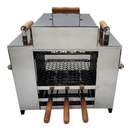 Características Gerais do produto Churrasqueira ecológica semetros fumetrosaça, metrosodelo grande, 3 andares, 2 grelhas + 3 espetos, tametrospa a bafo, zero fumetrosaça, ideal para ametrosbientes internos ou varandas. Caixas de carvão nas laterais cometros bandeja coletora de gordura na parte inferior para evitar fumetrosaça. Requer carvão 100% eucalipto de boa qualidade e álcool sólido ou emetros gel para acendimetrosento semetros fumetrosaça.
