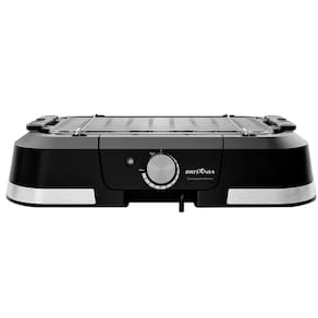 Churrasqueira elétrica Britânia 1500W com grelha removível, seletor de temperatura ajustável até 250°C, bandeja coletora de gordura, alças laterais com toque frio e pés antiderrapantes.Vendido e entregue por CTMD ESHOP COMERCIO E VAREJO DIGITAL LTDA EPP