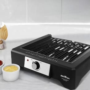 A Churrasqueira Elétrica Britânia Bcq2000 Flame Grelha Argenti é perfeita para os amantes de um bom churrasco. Com potência de 2000w 220v ou 1800w 127v , ela garante um rápido aquecimento para você preparar suas carnes de forma prática e eficiente. Essa churrasqueira conta com uma grelha tipo argentina, que confere um sabor especial aos alimentos. Além disso, possui uma bandeja coletora de resíduos, que facilita a limpeza após o uso. Com dimensões de 100x400x420mm, a churrasqueira é compacta e fácil de transportar. Seu design na cor preta é elegante e combina com qualquer ambiente. A base antiderrapante proporciona mais segurança durante o uso. A Churrasqueira Elétrica Britânia Bcq2000 Flame Grelha Argenti possui resistência e grelha removíveis, o que facilita a limpeza e também permite ajustar a altura da grelha conforme a necessidade. A chapa antiaderente evita que os alimentos grudem, tornando o churrasco ainda mais prático. Com o LED indicador de funcionamento, você pode verificar facilmente se a churrasqueira está ligada. E com a de 1 ano junto ao fabricante, você tem a tranquilidade de contar com um produto de qualidade. Itens inclusos: - 1 Churrasqueira elétrica Britânia Bcq2000 Flame Grelha Argenti - 1 Bandeja coletora de resíduos - 1 Manual de instruções Marca: Não Informado