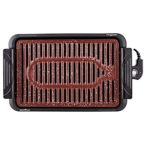 Churrasqueira Elétrica Britânia BCQ1300 Redstone com 1200W, revestimento cerâmico Redstone, 5 níveis de temperatura, base removível, reservatório para água e gordura, baixa emissão de fumaça e pés antiderrapantes.Prepare carnes, legumes, pães de alho e tudo o que você quiser com grande praticidade, dentro ou fora de casa, com a Churrasqueira Elétrica Britânia BCQ1300 Redstone 1200W. Conte com toda a eficiência do revestimento de cerâmica Redstone! Ele é mais durável, resistente e fácil de lavar, permitindo que os alimentos deslizem facilmente sem grudar. Além de ser livre de PFOA, PTFE e PFOS, ele é mais saudável e preserva o sabor e os nutrientes dos ão 1200W de potência que acelera o processo de preparo dos alimentos, reservatório para água e gordura, e base removível que facilita o manuseio do falar que a Churrasqueira Elétrica Britânia é ideal para preparar churrasco dentro de casa, pois tem baixa emissão de fumaça.