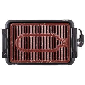 Churrasqueira Elétrica Britânia BCQ1300 Redstone com 1200W, revestimento cerâmico Redstone, seletor de temperatura, base removível, reservatório para água e gordura, baixa emissão de fumaça e pés antiderrapantes.Churrasqueira Elétrica Britânia BCQ1300 Redstone 220V