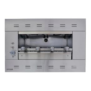 - Bandeja coletora de gordura em alumínio com frente de inox;