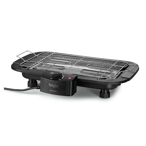Churrasqueira eletrica de mesa Elgin. Potencia de 2000W (220V). Grill amplo, indicacao luminosa de funcionamento, termostato de controle de temperatura que possibilita temperatura variavel da resistencia. Grelha, resistencia e bandeja de residuos removiveis para facil limpeza. Dois niveis de ajuste para altura do grill. Rapida, pratica e compacta. Bandeja para anti-fumaca que auxilia para deixar o ambiente melhor. Utilizacao: Mesa ou bancada.