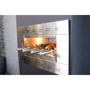 Você ama fazer churrasco, mas não gosta da fumaça, da sujeira e do trabalho que dá acender o carvão Você quer ter uma churrasqueira moderna, prática e eficiente na sua casa, mas não tem muito espaço Então você precisa conhecer a Churrasqueira Elétrica de Embutir Suprema da Titan Eletro. A Churrasqueira Elétrica de Embutir Suprema é a solução perfeita para quem quer fazer um churrasco de qualidade, sem complicação e sem desperdício. Ela é feita de aço inox, um material resistente, durável e fácil de limpar. Ela tem um design elegante e compacto, que se adapta a qualquer ambiente. Ela funciona nas voltagens 127v ou 220. Ela tem um painel ventilado, que evita o superaquecimento e garante a segurança do usuário. Ela tem um sistema de rotação automática dos espetos, que assa a carne de forma uniforme e saborosa. A sua capacidade é de 4 espetos, que podem ser de carne, frango, , queijo, legumes ou o que você preferir. Ela tem um controle de temperatura, que permite regular a intensidade da resistência e o tempo de cozimento. Ela tem uma bandeja coletora de gordura, que facilita a higienização e evita o mau cheiro. A Churrasqueira Elétrica de Embutir de Suprema é fácil de instalar, de usar e de manter. Ela tem uma de 6 meses contra defeitos de fabricação. Seu custo-benefício é excelente, pois além de ter um preço justo, ela economiza gás, energia e tempo. Essa churrasqueira é a melhor opção para você que quer aproveitar os momentos em família ou com os amigos, com um churrasco delicioso, rápido e sem bagunça. Ela é a churrasqueira que você sempre sonhou e agora pode ser sua. Descrição Registro de controle da temperatura, com botões injetado em alumínio 4 Espetos rotativos com cabo térmico em inox Sendo 03 simples e 01 triplo 2 resistências Potência: 2500w 1250w cada resistência Painel frontal modular em aço inox AISI 304 escovado 1 Bandeja coletora de gordura com frente de inox Cada espeto suporta 1,7 kg de carne Informações Técnicas Função: Assar carnes, peixes, legumes e pizzas Capacidade total de carnes: 6,8 kg Número de espetos: 4 Giro do espeto: 6RPM Tensão do Motorredutor Elétrico: 12v Potência do Motorredutor elétrico: 28W Giro do espeto: 6RPM Número de resistências: 2 UN Frequência: 60Hz Lâmpada: Halopin G9, 127v ou 220v, 40W Consumo elétrico 2,6 Kw/h Voltagem: 127v ou 220v Escolher no momento da compra Medidas Medidas produto AxLxP : 48,7 x 70,3 x 56,5 cm Medidas da embalagem AxLxP : 59 x 86 x 68 cm Peso Líquido: 18 kg Peso Bruto: 19 kg Observação: Siga as instruções de instalação conforme manual do fabricante, sempre respeitando o fluxo de ar.