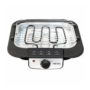 Churrasqueira elétrica com grelha removível, coletor de gordura e prato em ferro fundido. Possui controle de temperatura ajustável e design compacto e portátil.Vendido e entregue por eFácil