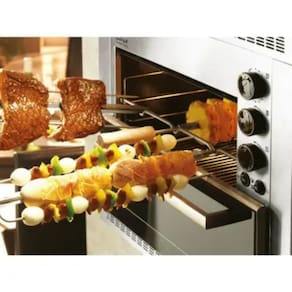 A churrasqueira Elétrica Fischer Ranch Grill pode ser instalada em bancada ou embutida em alvenaria e não produz fumaça. Seus espetos rotativos proporcionam um assado uniforme. Possui lâmpada interna e seu interior é esmaltado em easy clean.