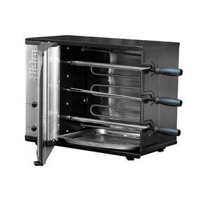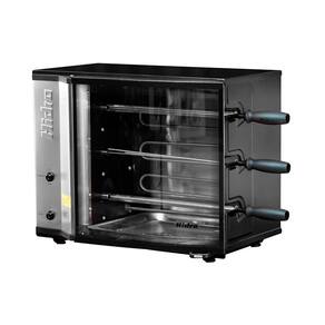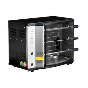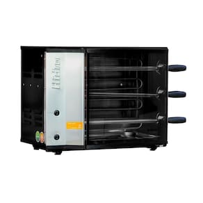 Conta também com capacidade para 3 espetos giratórios, sendo eles 2 simples e 1 triplo, cada espeto suporta 1,5 kg de carne e assa 7,5 kg de carne por hora.