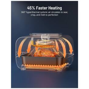 AQUECIMENTO UNIFORMES MAIS RÁPIDO DE 45: A churrasqueira interna usa uma placa de aquecimento inferior em vez dos tubos de aquecimento tradicionais, o que garante um cozimento uniforme e elimina pontos quentes ou bordas queimadas. Ele também possui uma poderosa potência de 1700W, garantindo um aquecimento 45 mais rápido que outros. Além disso, nossa grade de ar tem uma faixa de temperatura de 49 232 e pode ser configurada por até 24 horas somente no modo Desidrato. Experimente com entusiasmo a diferença com a nossa grade de ar de ponta.