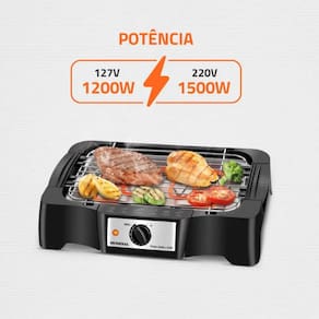 Com potência de até 1500W e controle de temperatura, garante rapidez e precisão no preparo. Grelhe carnes, frangos, hambúrgueres, vegetais e muito mais sem complicação. Além disso, a grelha com altura regulável e a resistência removível tornam a limpeza muito mais fácil.