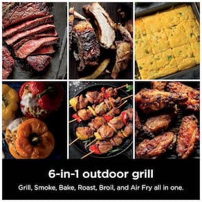 A churrasqueira elétrica Ninja Woodfire OG321 foi desenvolvida para uso em áreas externas, combinando grill, defumador e air fryer em um único equipamento. A tecnologia Woodfire utiliza pellets de madeira em uma caixa de fumaça dedicada para adicionar sabor defumado autêntico aos alimentos, enquanto o aquecimento principal é feito por resistência elétrica.