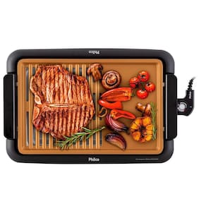 Churrasqueira elétrica philco 1500w pcq1500d maxx gold 110v A churrasqueira elétrica philco pcq1500d tem poderoso antiaderente maxx gold, ele é durável, resistente e fácil de limpar, grelha os alimentos sem grudar. É ideal para ser utilizada dentro de casa, a gordura dos alimentos vai direto para a bandeja coletora, impedindo que entre em com contato com a superfície aquecida, evitando o fumaça. Saia do convencional, faça uma refeição diferente e mais saborosa com a pcq1500d. Surpreenda a todos Diferenciais: - grelha de alumínio com revestimento antiaderente dourado - revestimento antiaderente base água - alças laterais com toque a frio baquelite - 40% chapa lisa e 60% grelha - acompanha bandeja de água/ coletor de gordura - grelha removível - baixa emissão de fumaça - seletor de temperatura - termostato removível; - pés antiderrapantes - base/suporte de plástico - sistema de segurança: só liga se estiver montado na base Dados técnicos: - voltagem: 110v - potência: 1500 w - consumo: 1,50 kw/h - composição: metal e plástico - dimensões internas axlxp : 50x7,7x34,5 cm - medidas lxaxp : 33x37x31 cm - peso: 2,05 kg - garantia: 12 meses Conteúdo da embalagem: - churrasqueira elétrica philco pcq1500d - manual de instruções