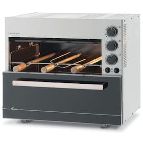 Além disso, tem Timer de até 2 horas, luz interna e acompanha 2 espetos simples, 2 espetos duplos, 2 suportes cromados para grelha e 1 grelha cromada.