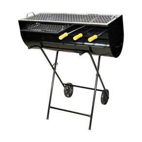 A churrasqueira é o principal utensílio culinário utilizado nos churrascos. É um tipo de fogão em que toda a superfície superior é uma grelha colocada sobre uma fonte de fogo aberto, que pode ser lenha, carvão vegetal (o mais comum). É ideal para assar frango, carnes, aves e peixes. Projetada para ambientes externos e internos como quintais, camping, áreas de piscina, praias, varandas entre outros. Leve, Prática para transportar, guardar e limpar. Carrinho com rodas para facilitar o transporte.