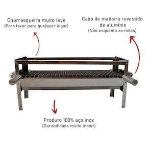 Churrasqueira Espetinhos Portátil Com Grelha Inox Juntar a família e amigos numa verdadeira churrascada é um hábito entre brasileiros e por isso a Issi Grill desenvolveu uma linha completa para churrasco desde churrasqueiras, espetos, acessórios para atender aos mais exigentes churrasqueiros de plantão. Pensando na praticidade do dia a dia e nos momentos de lazer desenvolvemos essa Churrasqueira de Espetinho Portátil com Grelha em Inox Issi Grill. Faça seu churrasco com muita praticidade em qualquer lugar, como ela é pequena e leve é fácil de carregar. Excelente para fazer aquele churrasco no almoço, jantar e até levar para praia, pescaria entre outros. Agora na Issi Grill você encontra esse e muitos outros produtos para churrasco MATERIAL:Chapas de aço inoxidável 430 Não enferruja Espessura de 0,6 mm MEDIDAS:21 cm de comprimento66 cm de profundidade30 cm de altura GARANTIA:180 dias para vícios ou defeitos de fabricação. ITENS INCLUSOS:01 Churrasqueira aço inox 01 Grelha Marca: Issi Grill