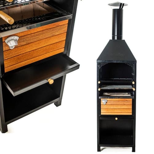 Produzida em aço carbono galvanizado e com pintura eletrostática na cor preta, seu acabamento em madeira se tornou a nossa churrasqueira mais desejada. Aliando eficiência e qualidade com um belo design, agradando aos churrasqueiros mais exigentes que querem ter uma boa churrasqueira, mas que também seja um belo item para decorar sua área gourmet.